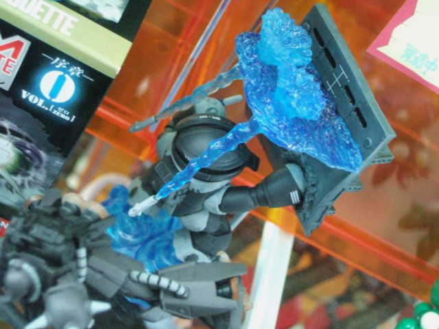 Amazonの解説によると「ガンダムロウバストとは、ガンダムの世界で繰り広げられた戦場の臨場感を高いレベルで演出し、一瞬のシーンを戦場カメラマンの視点で切り取った新しいコレクションシリーズです。」というもの。(画像はコトブキヤ秋葉原店でのフルカラー版の展示の様子)