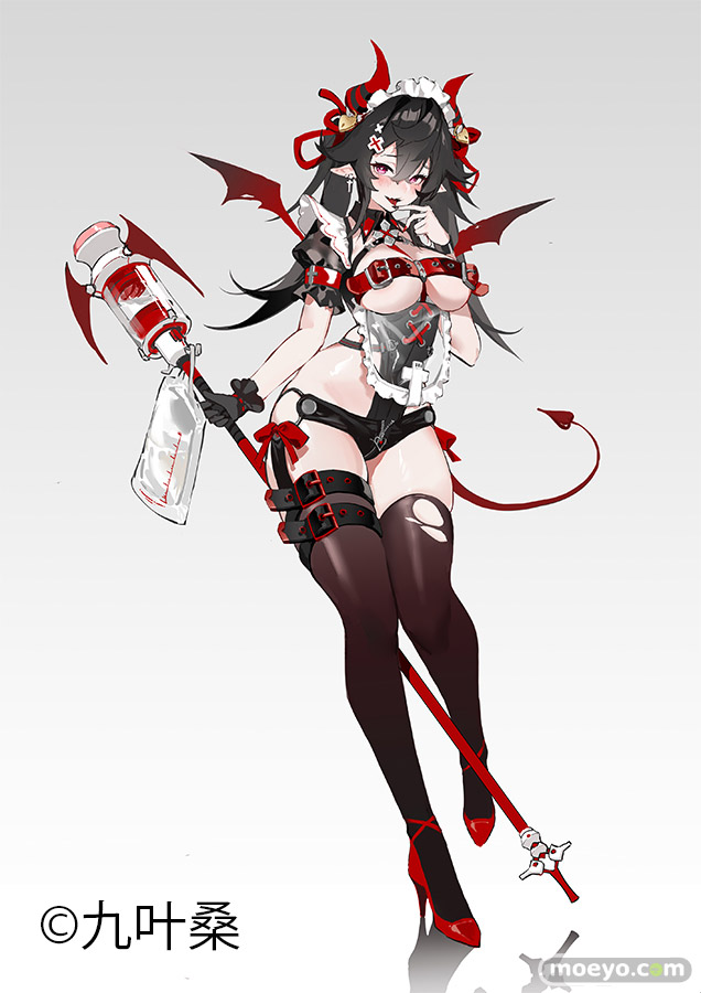 ロケットボーイの新作エロフィギュア「九叶桑氏オリジナルイラスト ゼナ」が予約受付開始!『大人気イラストレーター、九叶桑氏が描く「ゼナ」を立体化!はち切れんばかりのバストとヒップに引き締まったくびれボディを再現しました。小悪魔ナースの色気に精気を吸われてしまいそうです!各所のクリアパーツによる彩色のメリハリや、手首の差し替えによるシチューションの変化もお楽しみください。』というもので、胸とショートパンツは取り外しと差し替えが可能!原型制作は日不見ひずみさん。彩色制作はグラハム仮面さん。そのサンプルの様子を、画像レビューとしてお伝えします!(アダルトフィギュアとなります!18歳未満の方は閲覧をお控えください。)