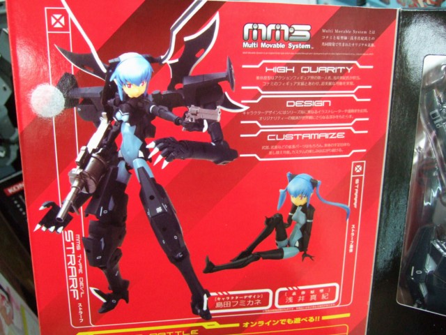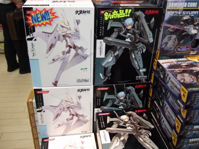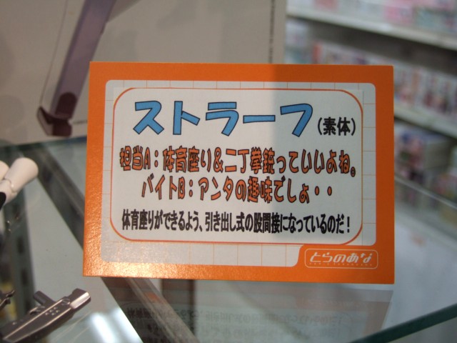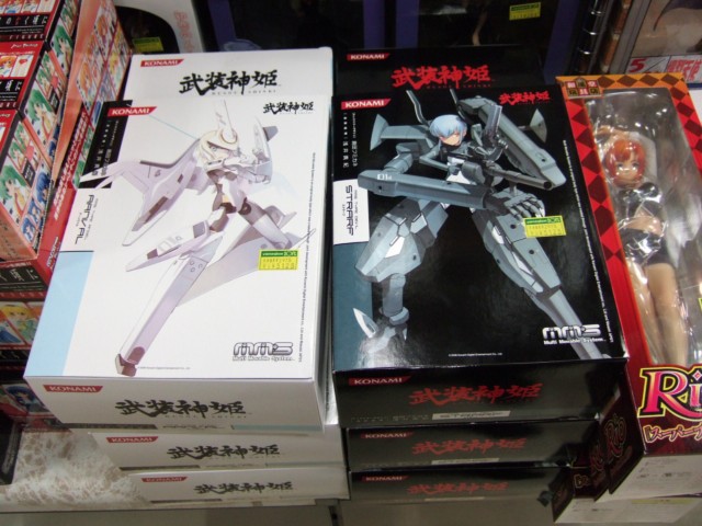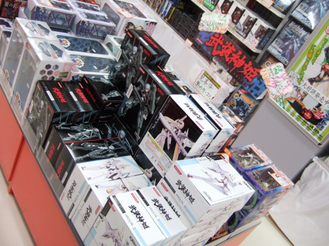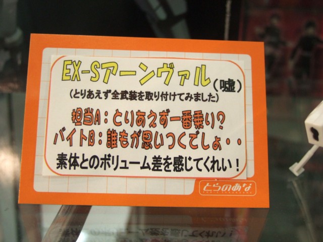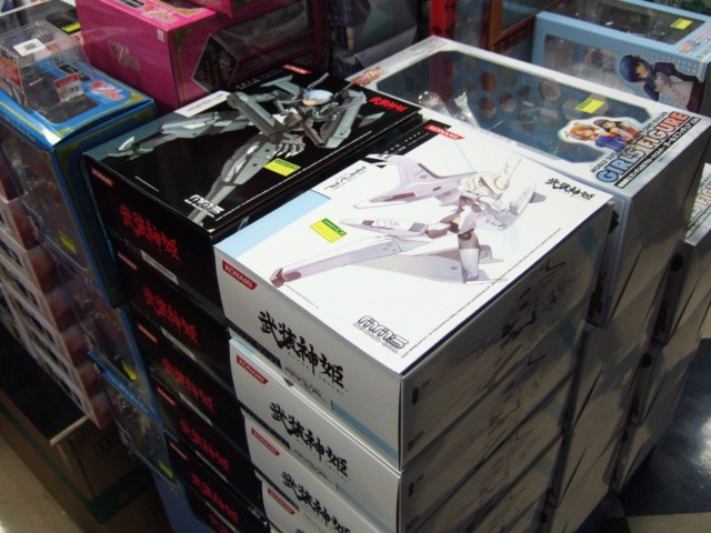 アキバではフライング販売もあったみたいですが、7日にはとらのあな本店でも発売となり、ショウケースに「とりあえず全武装を取り付けてみました」として、2種の武装パーツをほぼ全部くっつけたアーンヴァルが展示されていました。ストラーフはほぼ素体で展示。