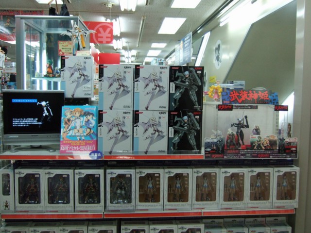 キャラシティでは、カウンター横の特設コーナーに配置して、武装を普通につけたそれぞれのサンプルを展示し、武装神姫のPVが流れていました。