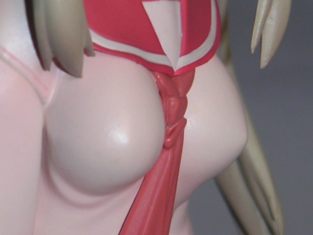 エロゲキャラということもあってか、今までのコトブキヤのToHeart2シリーズよりも、エロい要素を前面に出している感じで、へそは出てますし、B地区はほんのり浮いてますし、スカートがかなりのミニスカ状態に。