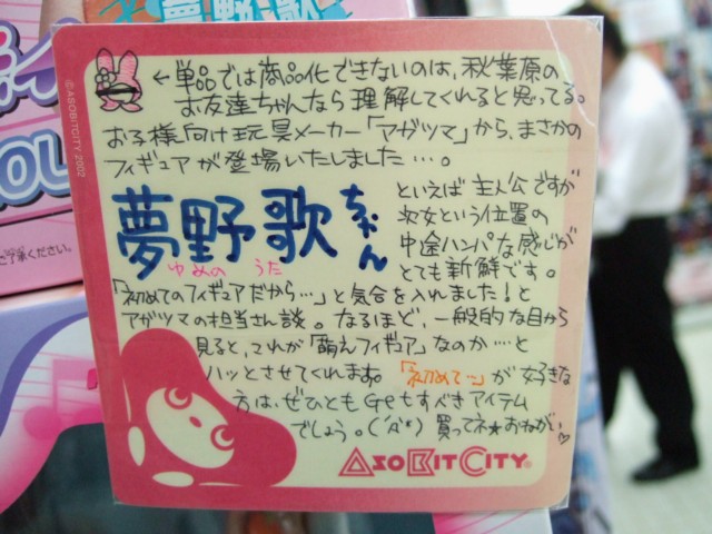 ほか、「マイメロディ 歌ちゃん」(AA)の在庫をアキバで探してみましたが、『お子様向け玩具メーカー「アガツマ」から、まさかのフィギュアが登場いたしました・・・。』とした、長々とした文章のPOPがつけられていたキャラシティ以外では見かけることが出来ませんでした。