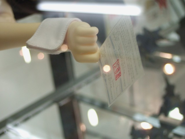 みくるの売り込み?をしていたハルヒは、「ところでオレの玩具を見てくれ、こいつをどう思う?」「すごく・・・非売品です・・・」とされているスタッフさんの私物展示コーナー「スタッフのおもちゃ箱」の最下段。