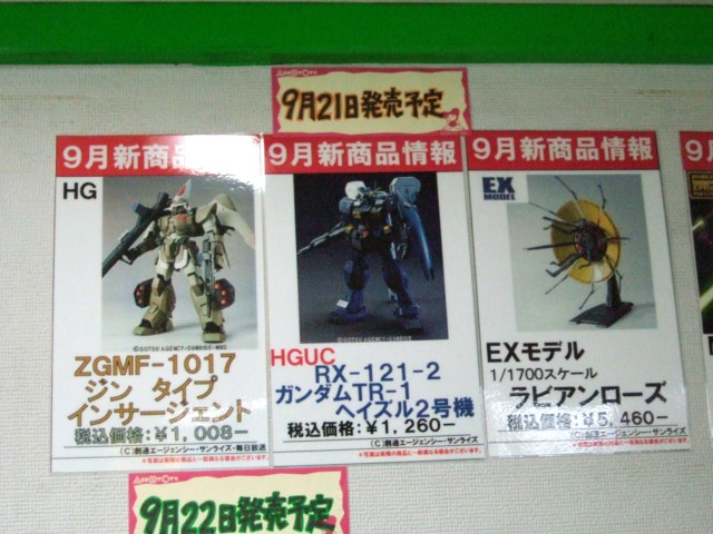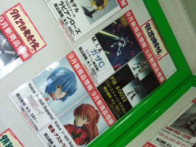 キャラシティ2Fにて、Voice I-doll Superior「惣流アスカ・ラングレー」(AA)と「綾波レイ」(AA)、「EXTENDED MS IN ACTION!! 百式」(AA)、「1/100 MG クロスボーンガンダムX-1 Ver.Ka」(AA)、「1/144 HGUC ガンダムTR-1ヘイズル2号機」(AA)などの、9月発売予定のバンダイのガンダム関係+αの新作の発売予定日の掲載が開始していたので、いつものようにまとめてみました!