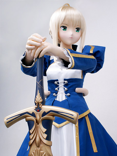 ペーパームーンの解説によると「ブロードバンド配信・WEB通販サイト「DMM.com」様からTVアニメ「Fate/stay night」の「セイバー」が発売となりました♪厳格な騎士でありながら年相応の女の子らしい一面を如何に出せるか…素体・メイク・ヘアスタイル等、全てに於いて吟味し、ここに再現しました!!更に存在感を発揮する装飾アイテムも再現しております!!是非ご堪能ください。」というもの。