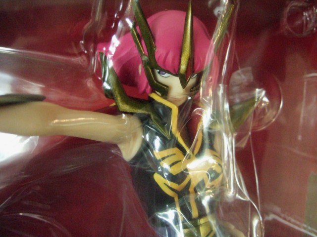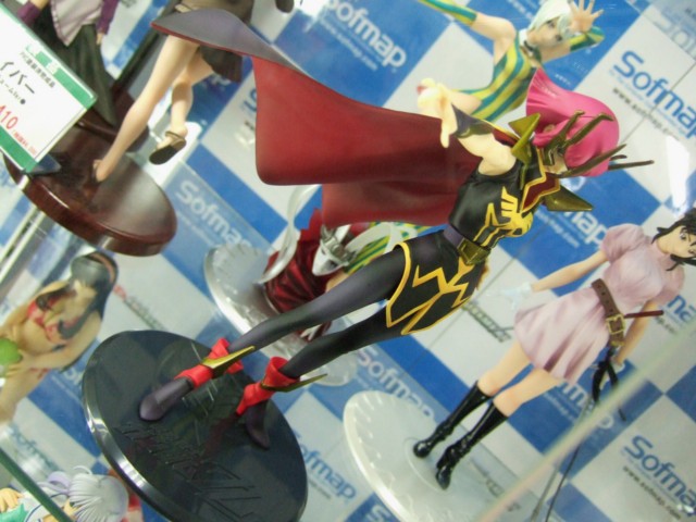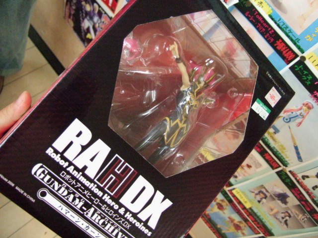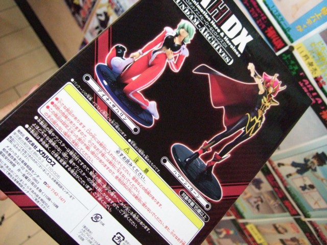 こちらは、「ハマーン・カーン」(AA)がパッケに入っている様子。パッケ右側面はハマーン様。マスク無しの前髪も付属しています。一番右の画像は、ソフマップ本店でのサンプル展示の様子。