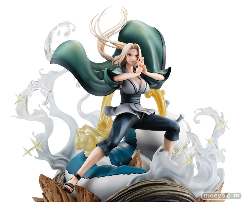 今回の綱手は戦いでの忍術をイメージし、激しさのある髪や羽織の動きを再現。おなじみカツユ様もビッグサイズで再現し綱手を支援。