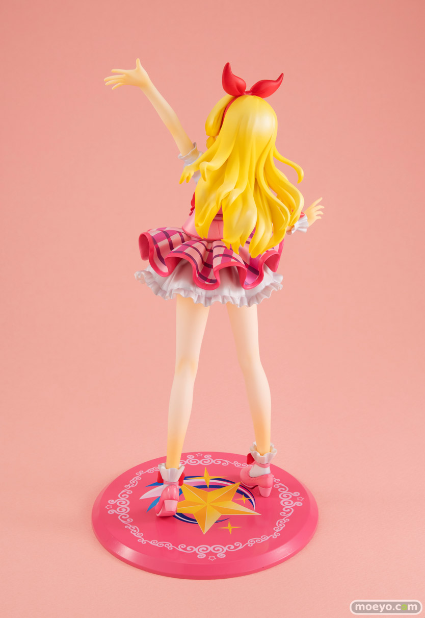 メガハウスの新作美少女フィギュア「Lucrea アイカツ! 10th STORY ~未来へのSTARWAY~ 星宮いちご ~光る未来へ~」が予約受付開始!『Lucreaシリーズ5周年を迎え、シリーズの第一弾を飾った『星宮いちご ピンクステージコーデ』の一部彩色をアップデートし再登場です!ステージ上でスポットライトあびて輝くいちごちゃんをイメージし髪の毛、ドレスにしっとりとしたパール塗装を追加、台座デザインをスターライト学園の校章へ変更。是非お手元でアイドルの輝きをお楽しみください。』というもので、原型制作はKIMA(リサセッズ)さん。彩色はえこしさん。彩色協力はピンポイントさん。そのサンプルの様子を、画像レビューとしてお伝えします!