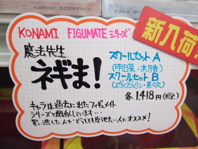 9月12日、コトブキヤラジオ会館にて、コナミのフィギュメイト 魔法先生ネギま!「スクールセットA」(AM)と「スクールセットB」(AM)が発売されていました。