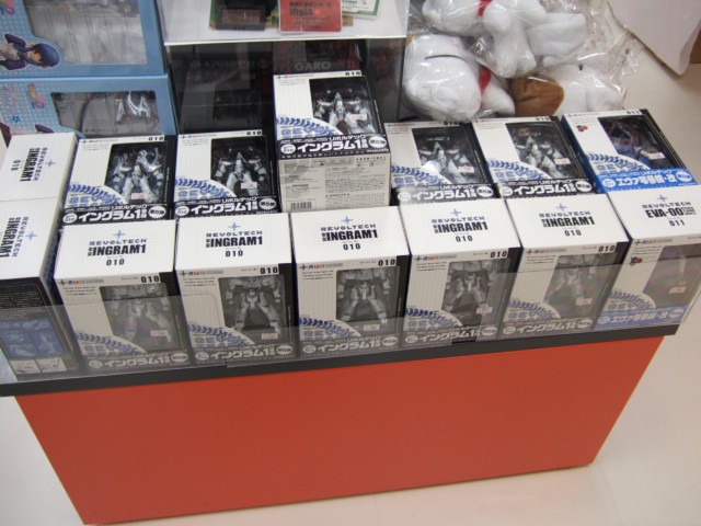 9月15日、アキバ各地で海洋堂の毎月2種同時発売となる「リボルテックシリーズ」の、「No.1ゲッター1」「No.2 ダグラム」「No.3 ダンテ」、「No.4 EVA初号機」「No.5 EVA零号機」、「No.6 EVA弐号機」「No.7 キングゲイナー」、「No.8 ゲッター2」「No.9 エヴァ参号機」に続く第5弾となる、「No.10 イングラム1号機」(AA)と「No.11 EVA零号機 改」(AA)の2種がコトブキヤラジオ会館にて発売されていました。