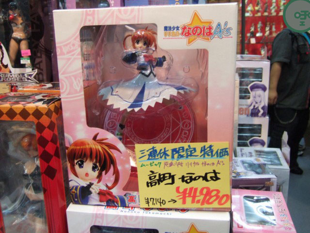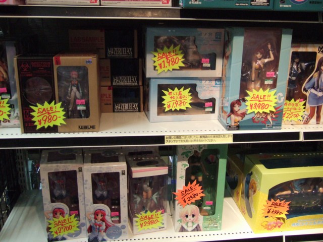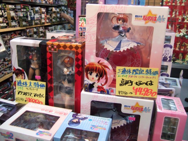 やるときはかなりやっちゃうコトブキヤ。コトブキヤ秋葉原店ではセール品の中に、12日の発売では2980円で売られていたコナミのランブルローズ「アナスタシア」(AM)と「アイグル」(AM)が発売5日で980円に。13日に発売されたムービックの「なのは」(AM)が4980円なども。