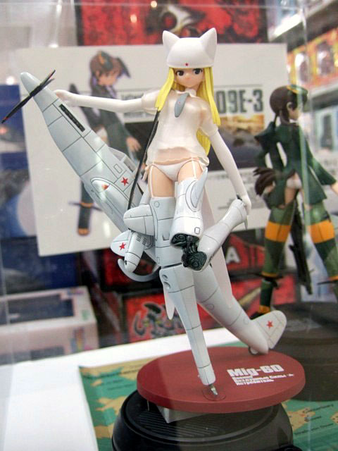 とらのあな本店5Fにて、とらのあな「FineScenery 機械化歩兵シリーズ ソビエト連邦空軍試作機Mig60」(AM)の彩色サンプルの展示が開始しています。これは、島田フミカネ氏が生み出したキャラクター「メカ娘」の通称「ロシアさん」を「機械化歩兵シリーズ」として立体化したもので、2005年開催されたBFCでも(おそらくキャストサンプルが)サンプル展示されていたもの。