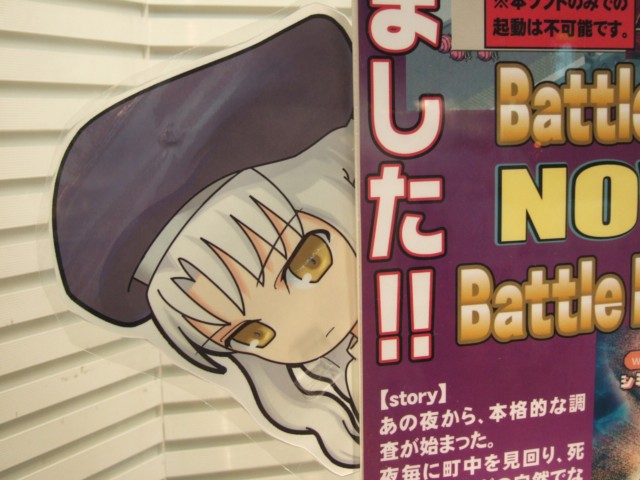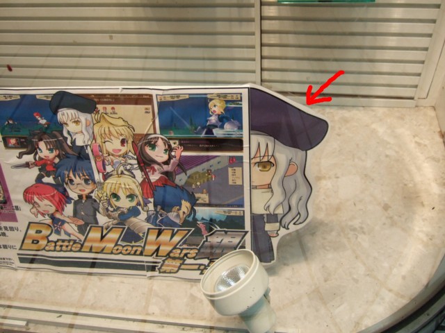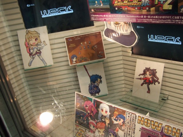 これは、TYPE-MOONのキャラクターを用いた二次創作のSRPGで、とらのあな1号店の店頭ディスプレイでも、BattleMoonWars銀の展開となっていて、第二部からの新キャラのイラストパネルなどが展示されていました。