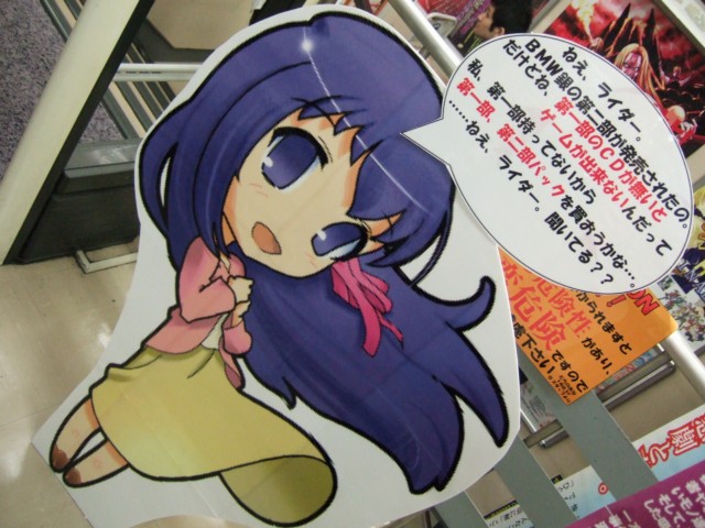 とらのあな3Fには、サクラとライダーの大きなパネルも置かれていて、その第一部がないと動かないことを説明していましたが、会話の内容みると、早速桜がハブられています。本当にありがとうございましたw