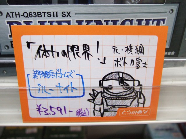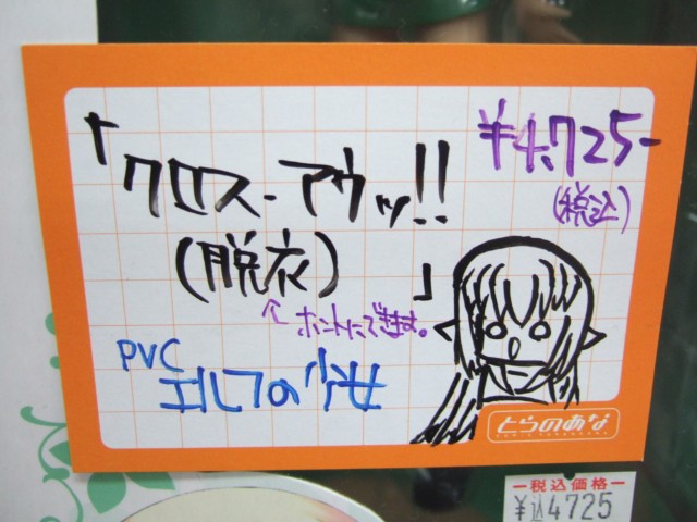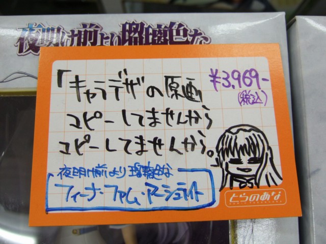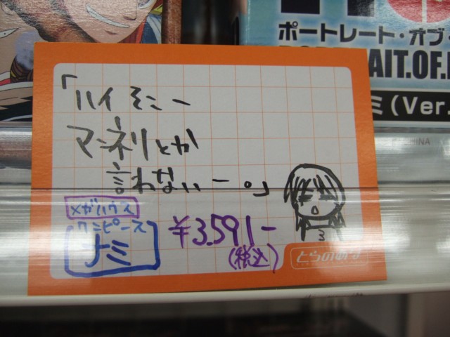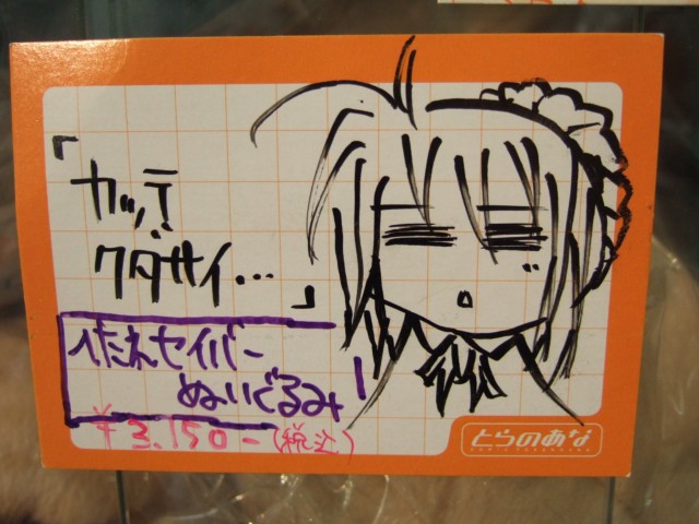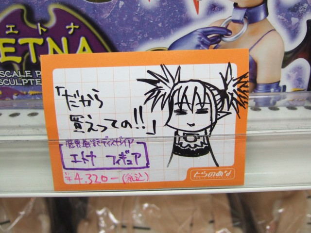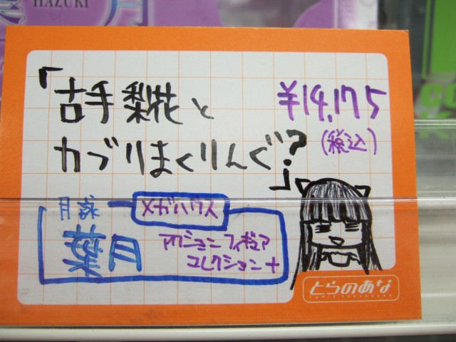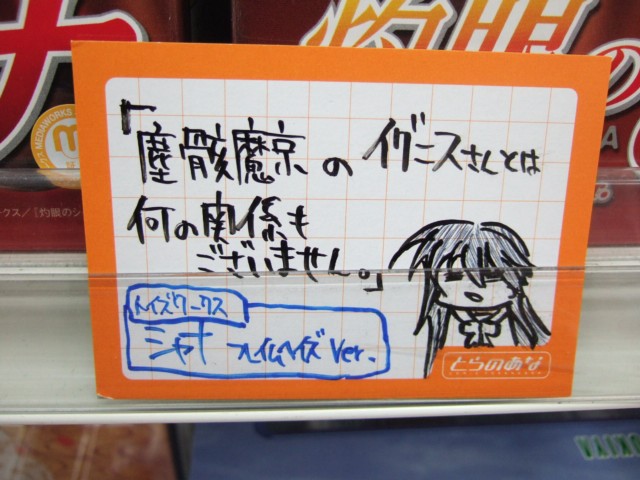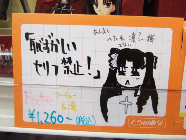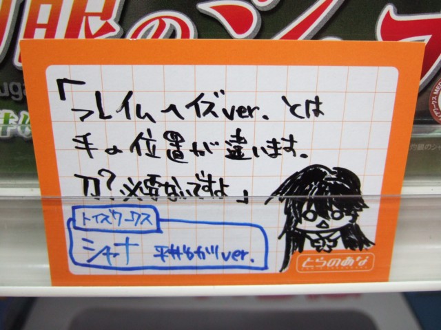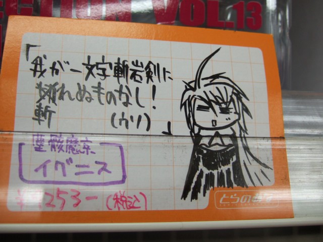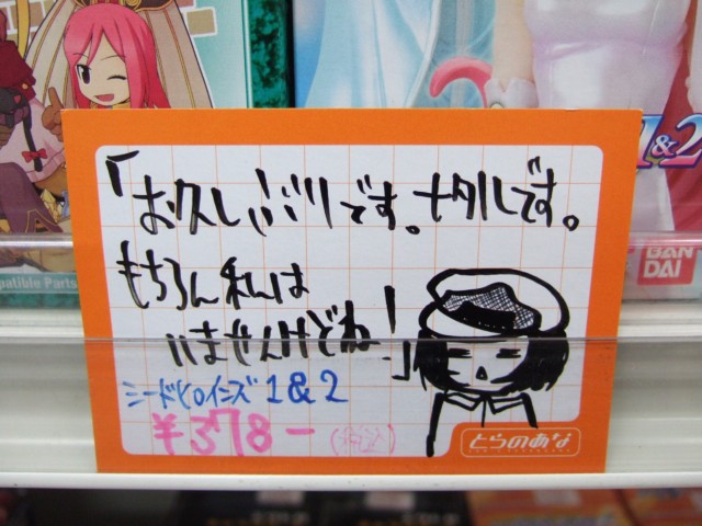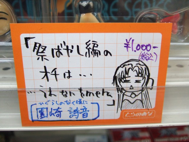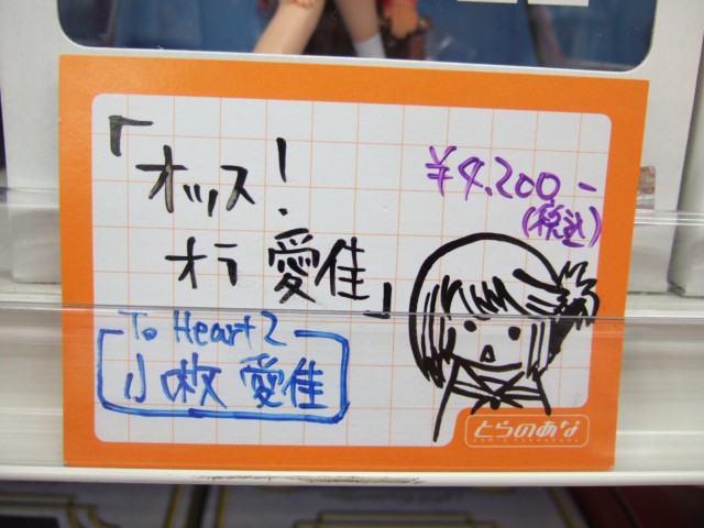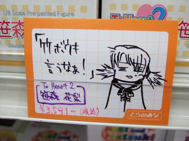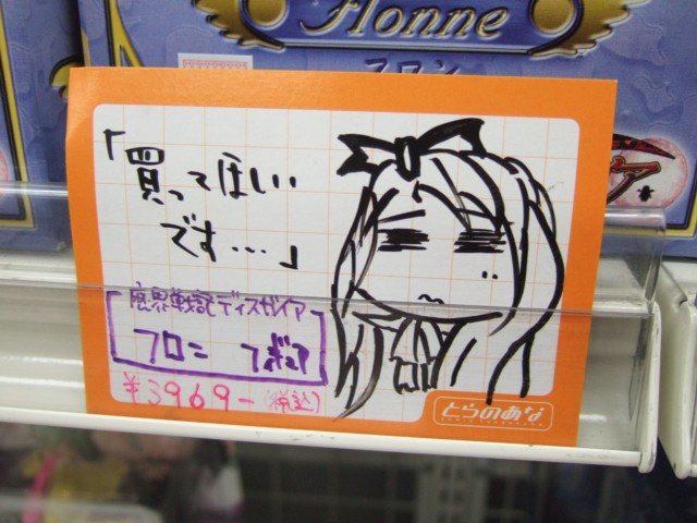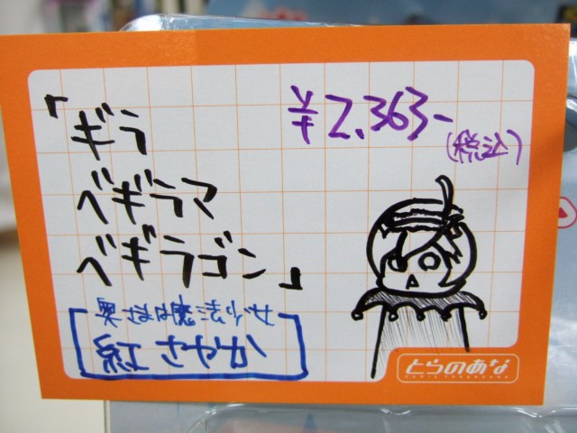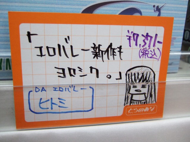 8月5日にグランドオープンした、とらのあな本店5Fの「最上部に見放された」ホビーフロアでは、オープン当時から、1号店時代には見かけることのなかった、つくりものじ氏風にへたれ化されたキャライラストに一言コメントが書かれたPOPを見るようになりました。その一言がとても面白いので、全てではないですが、50枚くらいのっけておきますw(画像はダイキいろはのPOP)