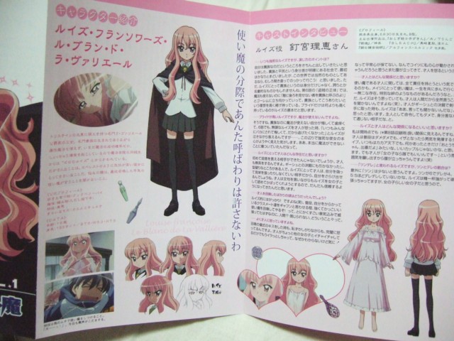 ミニパンフには、ルイズのキャラ紹介や、ルイズ役の釘宮理恵さんのインタビューなどが。これは2巻以降違うキャラで続きそうですね〜