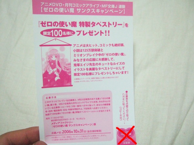 また、9月25日発売の「ゼロの使い魔 9巻」と9月27日発売の「月刊コミックアライブ 11月号」との連動企画の「特製タペストリー」プレゼントの応募用紙も入っていました。