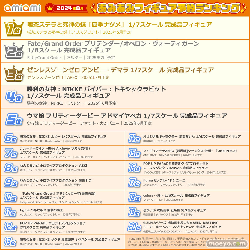 ※2024年8月1日から8月31日の期間中に予約開始されたフィギュアを対象として、自社独自の予約データ(予約数・金額など)を元にランキングを構成しています。