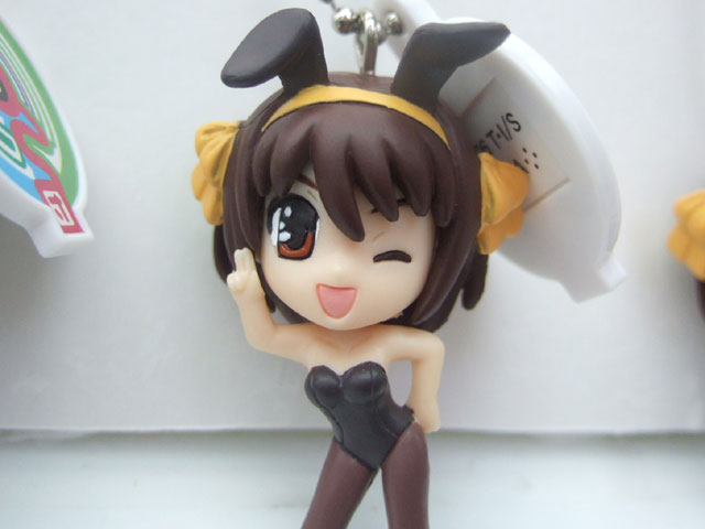 長門有希、涼宮ハルヒバニー、涼宮ハルヒ制服、キョン、朝比奈みくるの5種で、ガチャ1回200円。