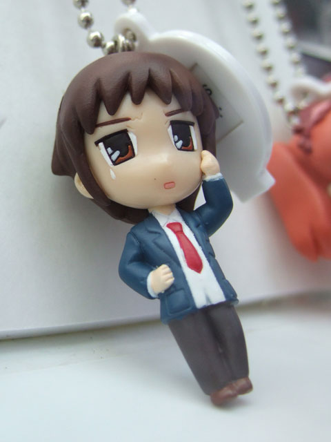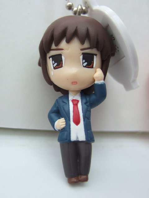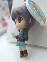 キャラシティの店頭にあるガチャガチャの上の展示スペースで、バンダイの「涼宮ハルヒの憂鬱 ハレ晴れスイング」のサンプルが展示されていることに気がつきました。これは、アニメ「涼宮ハルヒの憂鬱」のキャラを、ディフォルメ化して立体化し、スイングとしたもの。展示されていた第1弾は、長門有希、涼宮ハルヒバニー、涼宮ハルヒ制服、キョン、朝比奈みくるの5種。