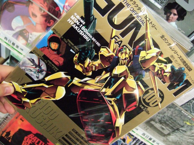 そして最後は、「Vol.100はヤッパリ百式でしたね」だった、「ガンダムファクトファイル」のNo.100の表紙のポーズで〜!(縦画面バージョンも一応)