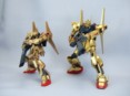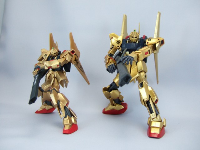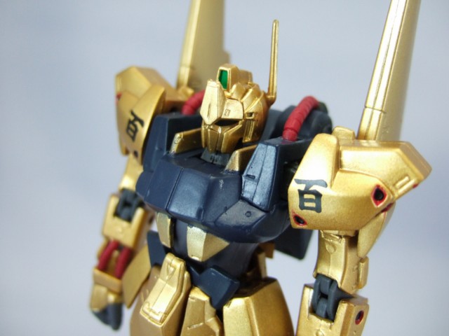 右から2番目の画像は、バンダイ「ガンダム アルティメットオペレーション プラス 第3弾」の百式(参考レビュー)と同じポーズにしたもの。