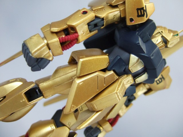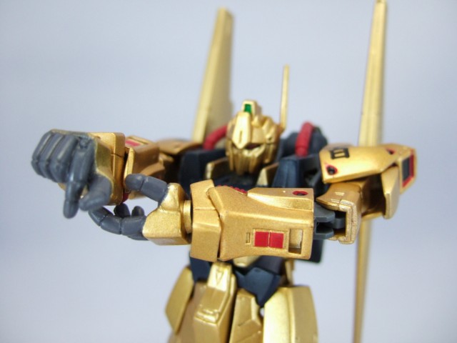 バンダイ「EXTENDED MS IN ACTION!! 百式」(AA)のレビューです。流石EMIA!ってかんじで、本当にビックリするぐらい可動します。それだけでなく、手首パーツの豊富さや、シンプルながら外せない2種の武器など、必要なものは一通り揃っているという感じです。金色の塗装もかなり綺麗で、価格を考えたらものすごいプレイバリューの高い一品じゃないかなと。