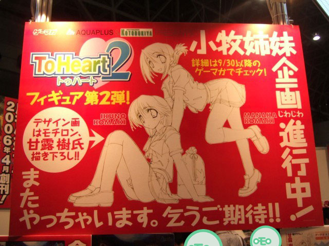 というわけで、まずはソフトバンククリエイティブブースにあった、あのスバラシイ出来のタマ姉(参考レビュー)に続く第2弾となる、愛佳&郁乃フィギュアのデザイン画がデカデカとパネルにされていました。