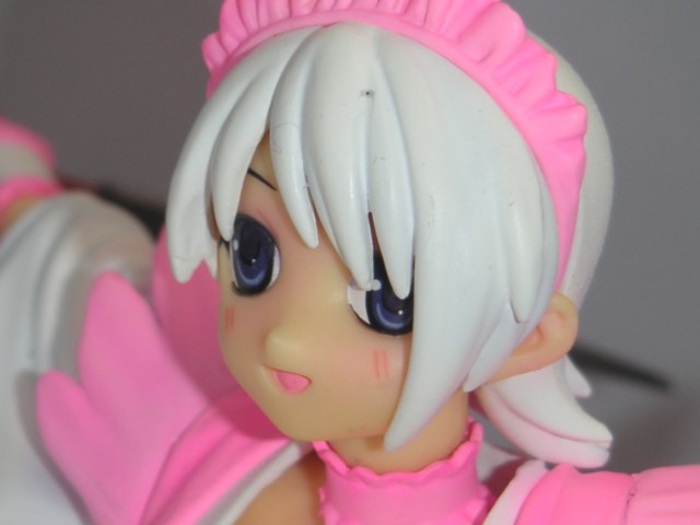 肌は丁寧にグラデ処理され、目の塗装はとてもすばらしいのですが、髪の毛や衣服などの塗装が思いのほか甘く、自分のものは髪の毛に黒い汚れがついてしまっていました。