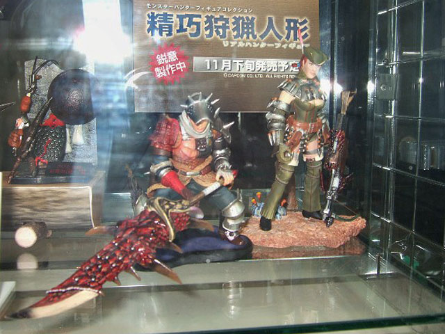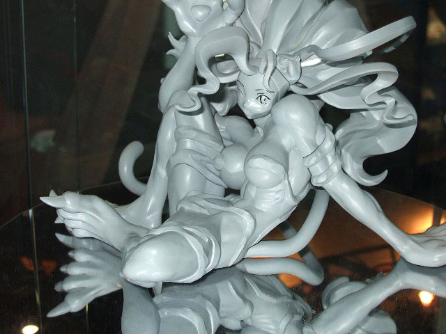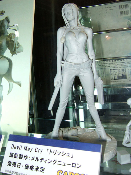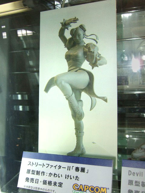 東京ゲームショウ2006のカプコン物販ブースの外周では、毎回おなじみとなってきている、カプコン関連の新作フィギュアの展示がされていました。ハピネットの「リリス版」(AM)や、エンスカイの「イングリッド」(AM)、「キャミィ」(AA)などのほかにも、カプコン格ゲーものやモンスターハンター、バイオハザードなど、原型製作段階の初だしものが多数展示されていました。