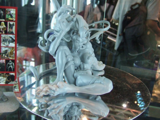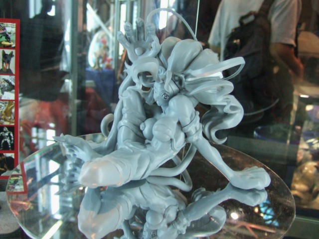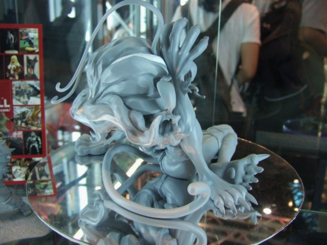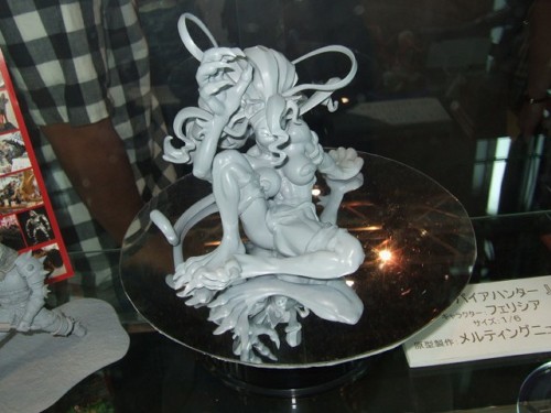 東京ゲームショウ2006のカプコン物販ブースで展示されていた、バンパイアハンター「キャラクター:フェリシア」は、今回一番の目玉なのか、唯一大回転で展示されていました。原型製作は、メルティングニューロンが担当されています。まだ原型製作途中といった感じで、造形的にはまだ荒い部分もありますが、とにかくその無警戒すぎな大また開きの大胆ポーズにやられますw