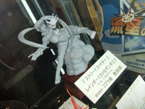 東京ゲームショウ2006のカプコン物販ブースで展示されていた、ストリートファイター「レインボーミカVSザンギエフ」とお伝えします。これは、ダイキ工業「1/4 戦国ブレード こより」(AM)の原型などを担当され、ワンフェス2006夏では、新作「To Heart2 タマ姉」を販売していた、コブラ会の唐詩朗氏が原型を担当されているもの。唐詩朗氏のブログによると、ガレキでの販売みたい。