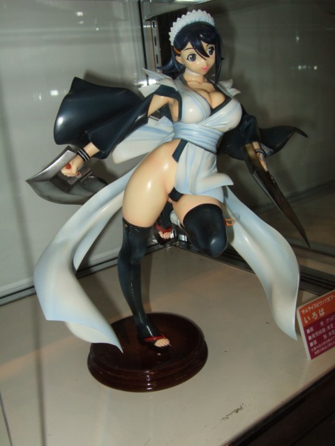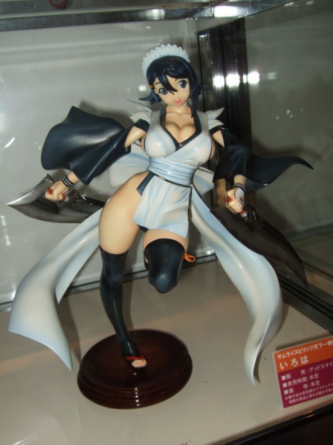 東京ゲームショウ2006のSNKプレイモアのブースでは、ワンフェス2006夏にて、無彩色サンプルが展示されていた、グッスマ「サムライスピリッツ天下一剣客伝 いろは」の彩色版サンプルの展示がされていました。これは、ワンフェス2006冬鉄虎竜ブースで初公開、販売されたガレキをPVC完成品とするもので、原型製作を中山栄二氏(鉄虎竜)が担当されているものです。