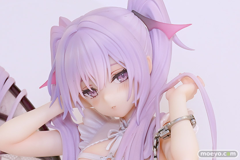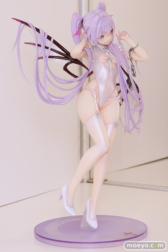 AniGiftの新作美少女フィギュア「「イヴ HAND CUFFS ver.」 illustration by rurudo」が予約受付開始!『大人気イラストレーターrurudo先生のイラスト同人誌「FAKE DOLL」より「HAND CUFFS」が1/6スケールで立体化しました!!小柄な色白少女ボディに目線を奪われ、透け透けの服とストッキングも大胆でたまらない~翼に垂れ下がったツインテールも念入りに仕上げ、自然で繊細な形で再現。体とバランスよくフュージョンし、まさにかわいいの化身として降臨しました!』というもので、製品版では無口顔と恥ずかし顔の二つの着換え顔パーツが付属!原型制作は76さん。彩色は茶多豚々さん。「ワンダーフェスティバル2024 [夏] 」の会場で展示されていた彩色サンプルの様子を、画像レビューとしてお伝えします!