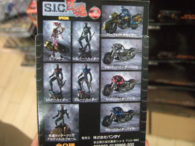 ブルーハカイダー、ブルーハカイダーバイク、レッドハカイダー、レッドハカイダーバイク、シルバーハカイダー、シルバーハカイダーバイク、キカイダーパーフェクトVer.&サイドマシーン、ビジンダー&サイドカー、クウガアルティメットフォームの全9種で、1BOX9個入り。