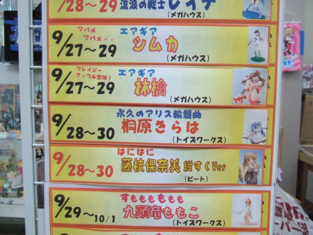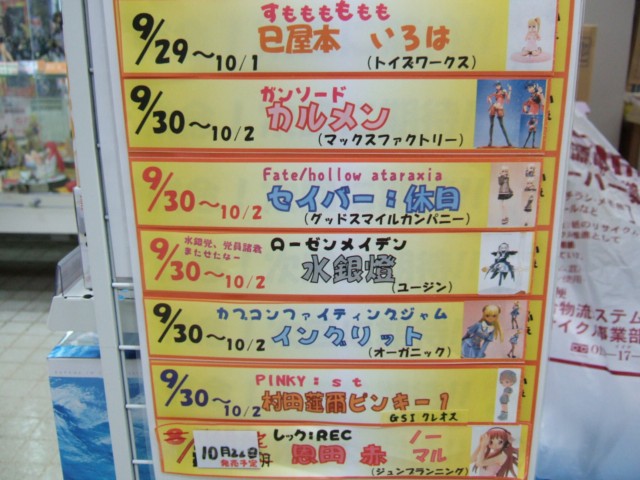 キャラシティ5Fでは、今月末に発売予定の美少女フィギュア系の入荷予定を貼り出していましたが、「ぶっちゃけ貼り切れません」とのことで、枠外にも貼られていました。
