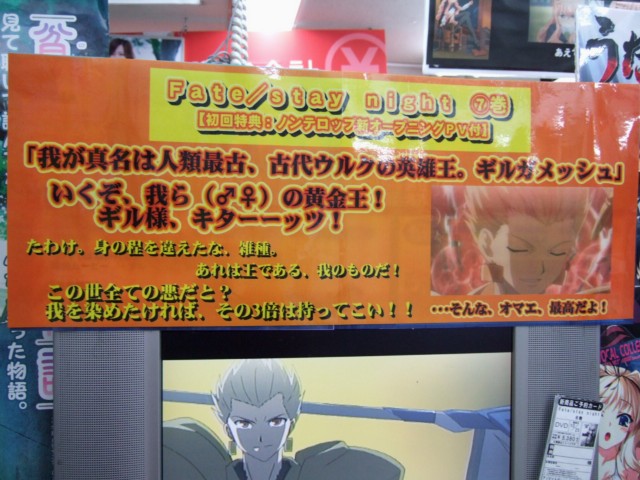 6巻の紹介ではデレ期に入った「セイバー」としていた、ゲームシティのPOPでは「ギル様、キターーーッツ!」とされていました。