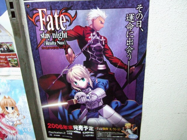■ アキバにて、「フェイト/ステイナイト[レアルタ・ヌア]」(AA)のアーチャー&セイバーのポスターの掲示が開始しています。キャッチコピーは「その日、運命に出会う-」。これがパッケージのイラストになるのかな?