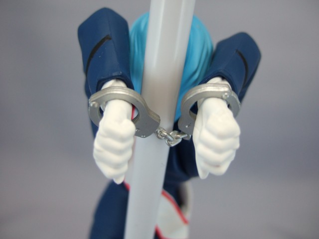 「行動中にハプニング」というのがどういうものかは不明ですが、綾波はなぜか手錠で標識に拘束されたポーズとなっていました。