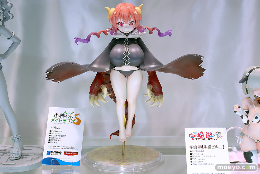 ウェーブの新作美少女フィギュア「小林さんちのメイドラゴンS イルル」が予約受付開始!『ほっこりはちゃめちゃドラゴンホームコメディ『小林さんちのメイドラゴンS』より、混沌勢の最過激派ドラゴン「イルル」が1/7スケール完成品フィギュアで登場!ダイナミックに翻るマントに、リアルな生物表現が施された角や大きなドラゴンの腕・爪・しっぽは圧巻の一言。背が低く内面ともども幼く見える印象と、それに相反する非常に大きなバストサイズといったアンバランスさも魅力的な、イルルらしさ満点の立体化となっています。』というもので、ニタァ~っとした血に飢えた狂戦士みたいな表情や、キョトンとした表情も付属。原型制作はまるひげさん。彩色はnamojiさん。その展示の様子を画像レビューとしてお伝えします!