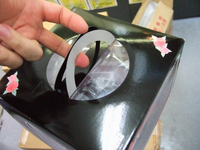 そしてパッケも結構こっていて、ケーキの箱みたいに上に取っ手がついていて、そのまま持ち運ぶことも可能です。 ま、だからと言って、お店でシールだけ貼って渡されても困りますけどね・・・w