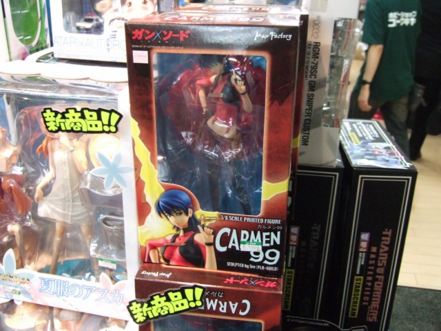 10月2日、以前、アキバにキャストサンプル展示もあった、マックスファクトリー「ガン×ソード カルメン99」(AA)が、アキバのいくつかのホビーショップにて発売していました。これは、以前コトブキヤラジオ会館にて、「どっちが前かわかんねぇよ」と書かれた予約POPもあった、アニメ「ガン×ソード」のキャラ99cmのバストと99の謎を持つ女「カルメン99」を立体化したもの。