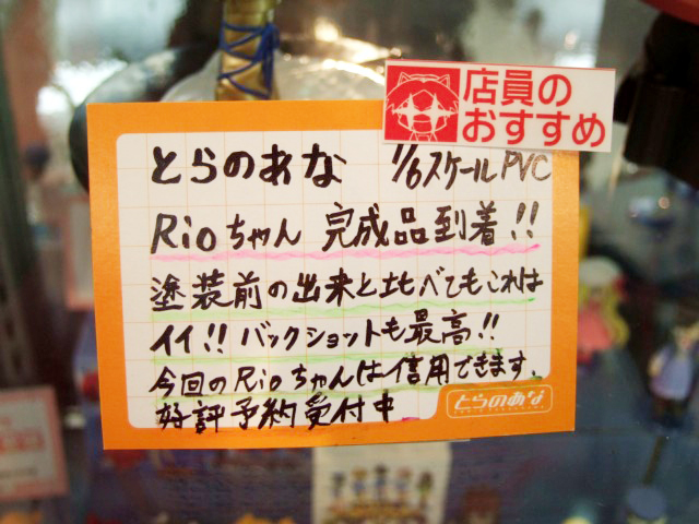 とらのあな本店ではPOPが追加されていて、そのPOPによると「塗装前の出来と比べてもこれはイイ!バックショットも最高!!今回のRioちゃんは信用できます。」とのこと。