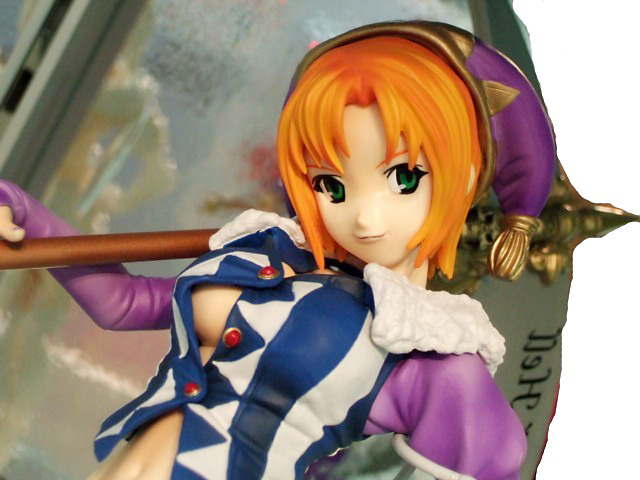 これは、パチスロの「スーパーブラックジャック(SBJ)」のイメージキャラクターであるRio(リオ)を、ジョーカーのコスチュームで立体化したもので、Amazonの解説によると「ちょっぴり小悪魔的な色っぽさと可愛らしさが同居する作品に仕上がっている。」というもの。