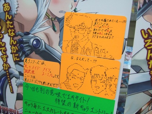 9月28日にアキバで発売された、エロイラスト集対戦型ビジュアルブックのクイーンズブレイド第4弾「近衛隊長 エリナ 」(AA)と「古代の王女 メナス」(AA)ですが、「もう職業とかどうでもいいな、エロければ。」というPOPがあったK-BOOKSに、AA風のキバヤシっぽい人のPOPが追加されていることに気がつきました。それによると「『妹』は今後の萌えの布石にすぎなかったんだよ!」