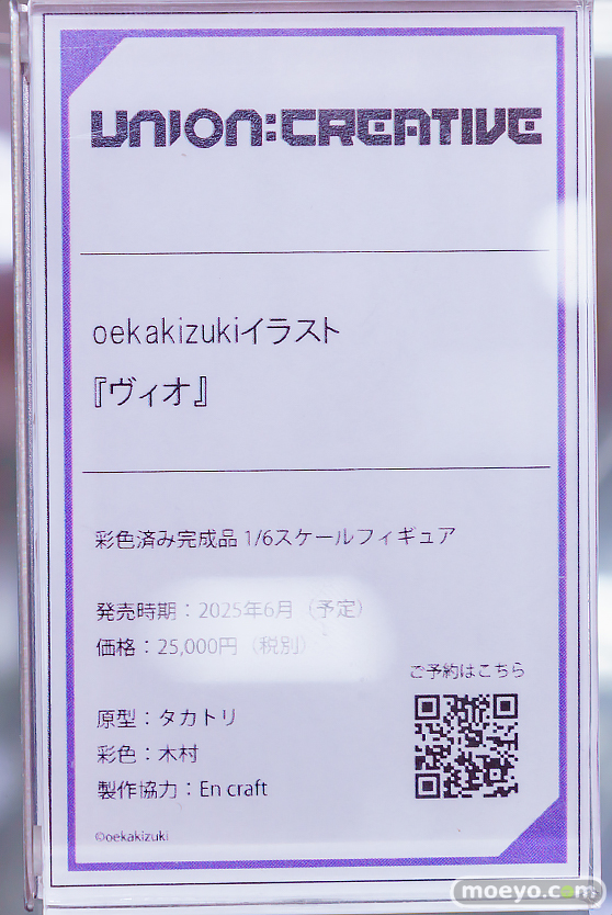 ■ 商品名:「oekakizukiイラスト『ヴィオ』」 ■ 発売元:ユニオンクリエイティブ ■ 仕様:PVC塗装済完成品 ■ サイズ:1/6スケール 全高約240mm(台座込) ■ 原型制作:タカトリ ■ 塗装:木村 ■ 製作協力:En craft ■ 価格:税込27,500円 ■ 発売:2025年6月 |