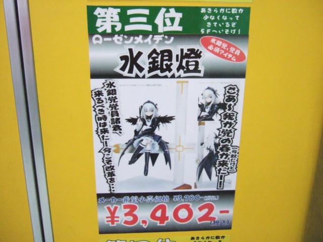 先週は更新がなかった、キャラシティのフィギュアランキングが更新されていました。今回は9月25日〜10月1日と、新作フィギュアが目白押しだった時期のもので、全てのランキングが総入れ替え。今回はやはり、脱いでも脱がなくてもすごい、メガハウスの「レイナ」(AA)と脱いだらすごい森の番人ノワ」(RA)が1、2フィニッシュ!何気にアーチャーに勝っているのもポインツw