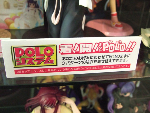 POPによるとPOLOシステムとは「着!開!さらにPOLO!あなたのお好みにあわせて思いのままに3パターンの法衣を着せ替えできます。「ぽろシステム」とは、新素材による柔らか成形パーツが可能にした着衣交換システムです。」というものみたいです。