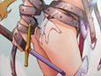 ラッシュキャラクターセレクションとして封入されている、久行宏和氏描き下ろしイラストの、クイーンズブレイドの「近衛隊長エリナ」(AA)、「流浪の戦士レイナ」(AA)の下敷き。