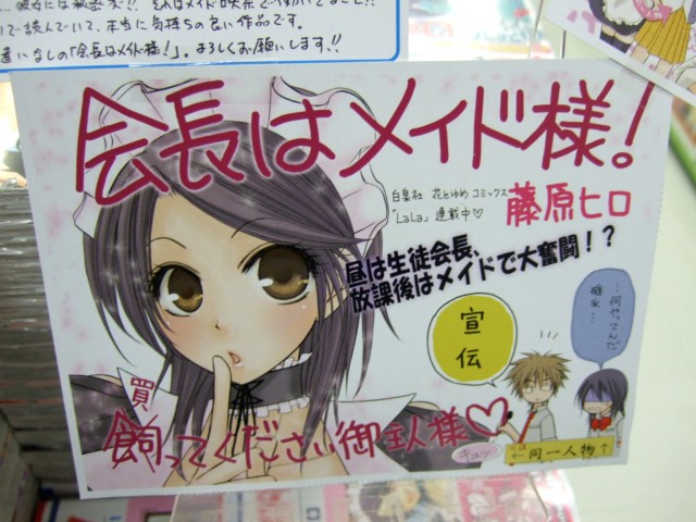 9月5日に発売されている、「会長はメイド様! 1巻」(AA)が、なぜかメロンブックス店頭の目立つ場所におかれていました。これは、LaLaで読み切りマンガとして掲載後、連載続行となった、藤原ヒロ氏の描くマンガで、マンガがあればいーのだ。さんが、「 会長におしおき・・・されたいです。」とされていたもの。店頭の目立つ場所におかれていたのは、多分「超絶オススメ」だからみたい。